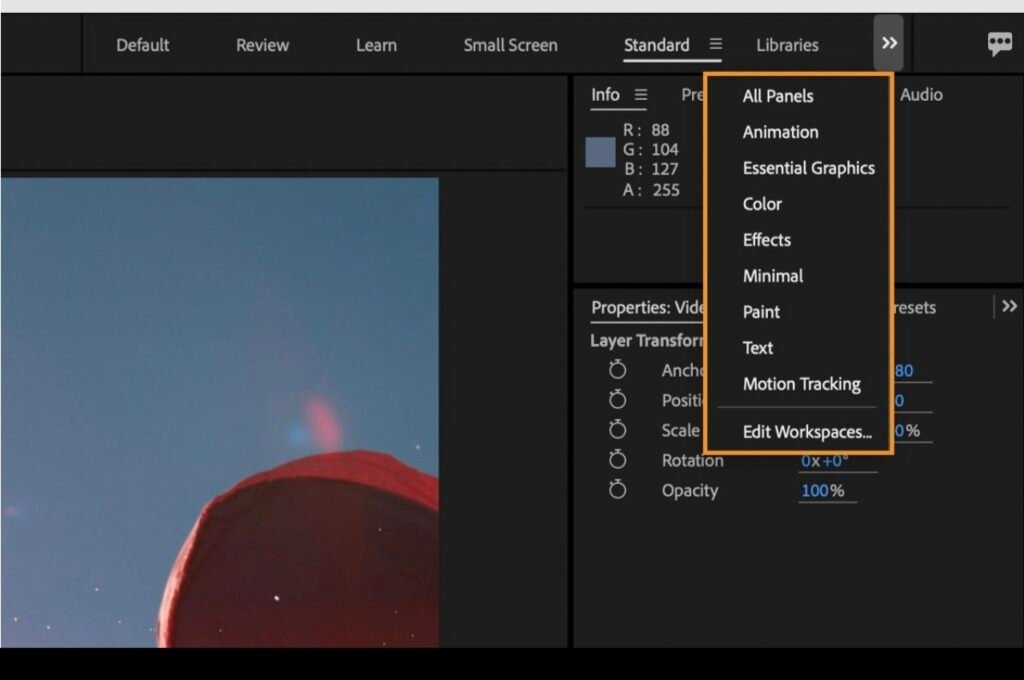 Workspaces in After Effects are pre-arranged panel layouts designed for different types of editing tasks. Instead of manually arranging panels every time, Adobe provides ready-made workspaces to improve efficiency.