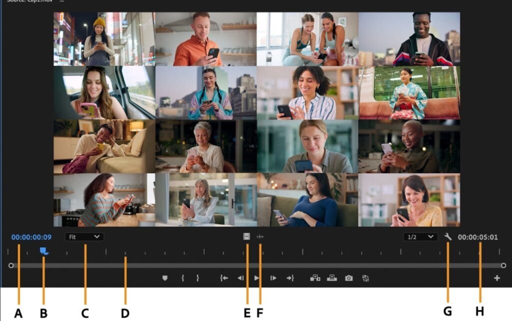 The Source Monitor is used to preview and edit clips before adding them to the timeline. You can double-click a clip in the Project Panel to open it in the Source Monitor. From here, you can trim the video, mute audio, or select only the required part. This helps save time and keeps your timeline clean. It gives you better control compared to directly adding clips to the timeline.